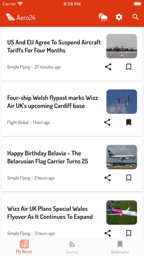 Aero24 is a news aggregator app specific to the aviation business.