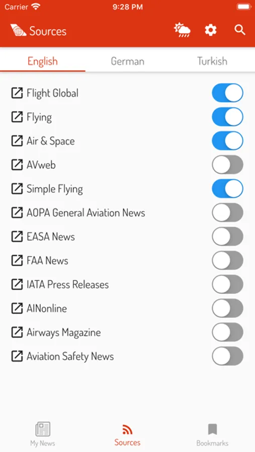 Following news sources are included in Aero24: