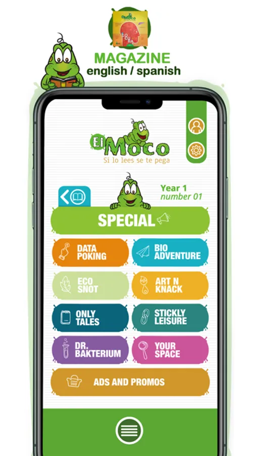 El Moco's app optimizes the reach of the magazine's users and exploits the tools provided by the electronic format. In this digital platform the contents of the printed format are expanded. In addition, interactive content is offered that children, as digital native users, can take advantage of. The APP is available in both English and Spanish.