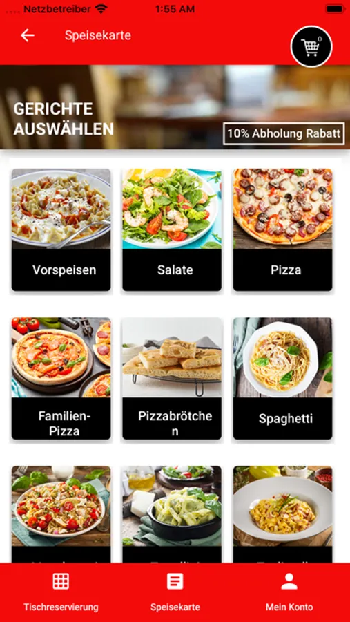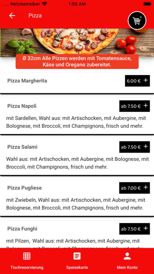 Betreten Sie unsere Menüseite, wählen Sie die gewünschten Gerichte aus unserer umfangreichen Speisekarte aus und legen Sie sie in den Warenkorb.