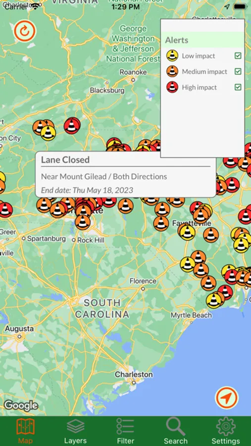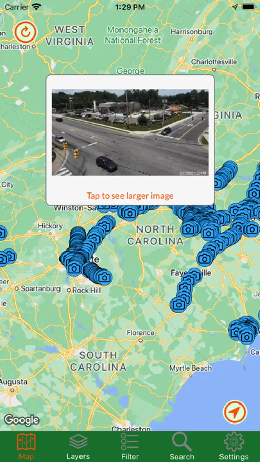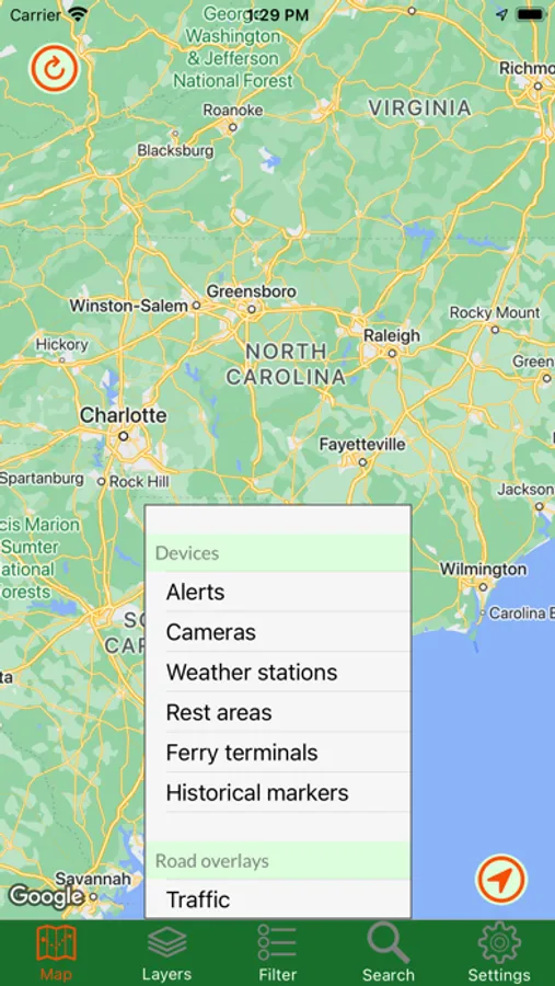 Know before you go. Whether you're a commuter or a recreational traveler, you need information about the road ahead. By accessing NC Department of Transportation road data, you can view traffic cameras, read alerts about construction and other road-related issues, get stats from weather stations, and find ferry terminals. And now available to all are historical markers so you can learn about the history of an area without stopping your car. Also available is Google Traffic, just so you have all the data in one app. Be smart, be informed.