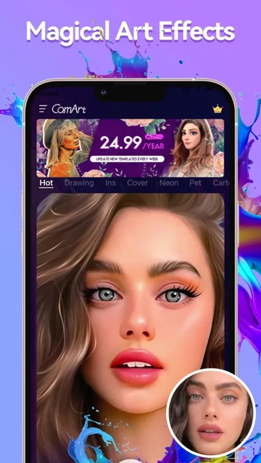 Make your photo more creative and chic with high fashion effects and stickers. Change the layout of the photo to be like a Vogue cover. We also have different fine themes for different subjects, come and have a try!