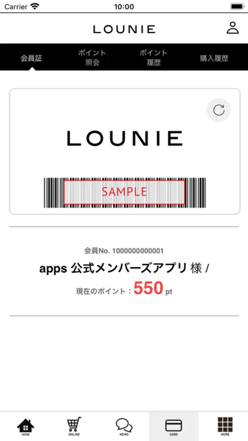 LOUNIE公式スマートフォンアプリは、対象店舗にて会員証としてご利用いただけるだけでなく、