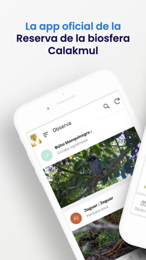 - Monitoreo comunitario, donde podrás ver fotos de los avistamientos de vida silvestre en la Reserva de la biosfera y compartir las tuyas.