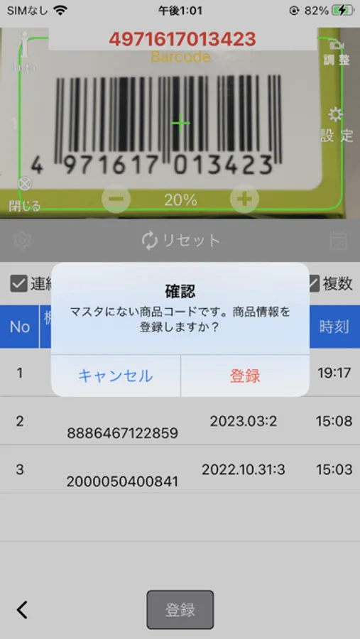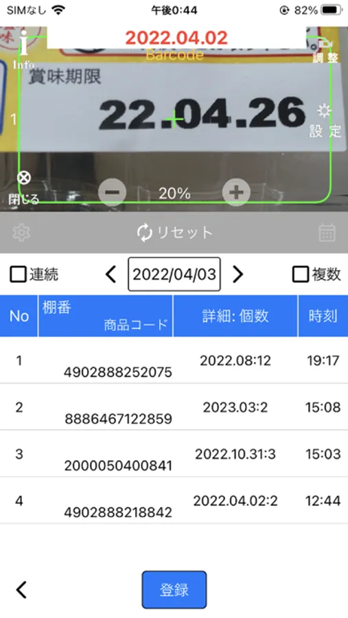 このアプリは、スマホのカメラで商品コード(バーコード)と賞味期限(数字)を読取り、情報表示し、その情報を管理サーバに登録する機能を持つアプリです。表示用の商品名や読取用の賞味期限印字列の種類情報等は商品マスタで管理され、そのマスタは情報管理サーバからダウンロードして活用します。コード読取は弊社(Leontec)のBarcode/OCRリーダモジュールを活用して実現します。