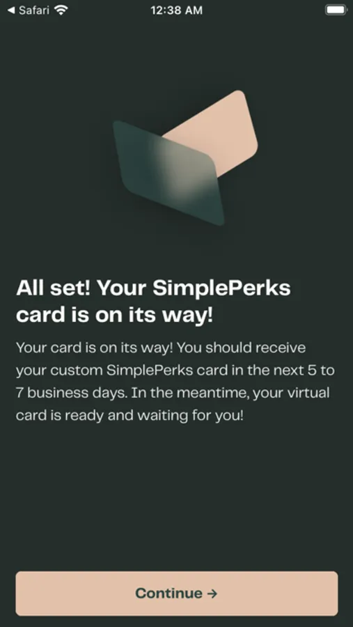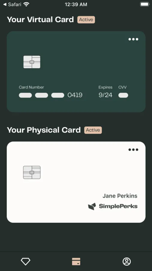 The companion app for your SimplePerks company card. Once your company has invited you to use SimplePerks you can download the app and and sign up to receive your SimplePerks card. You can see all the perks your company has enabled for you and select which perk you want to use to authorize purchases using your SimplePerks card. You can track all your SimplePerks card transactions and manage your physical and virtual SimplePerks cards from the app.