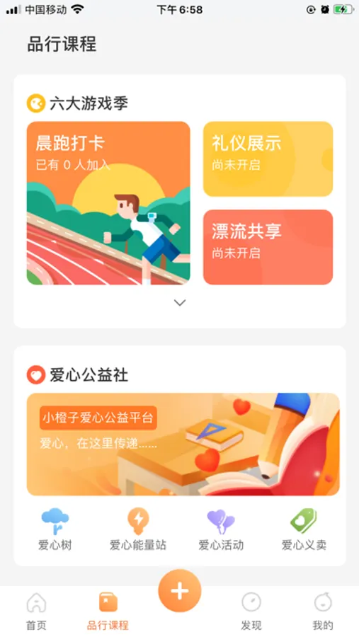 “小橙子”APP根据每个课程下的特色活动设计相应的游戏打卡程序及相关内容,每个活动完成相应的任务即可获得相应的勋章(每个特色活动集齐勋章的方式各不同),集齐相应数量的勋章,方可合成毕业勋章,最后可赢得小橙子勋章
