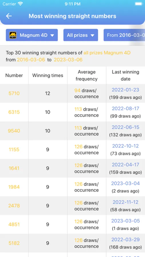 - Most winning numbers