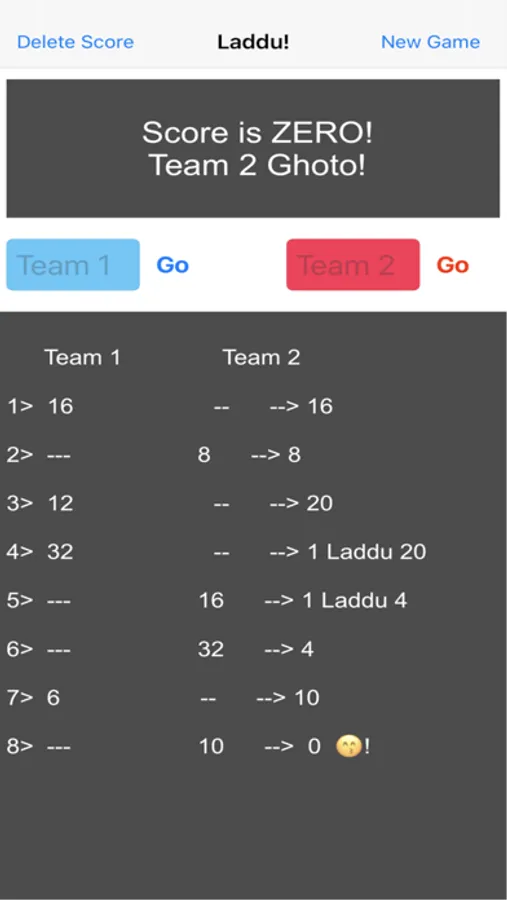 The points are 4/8/16/Laddu or 2 Laddu. One Laddu is 32 points. The points are decided based on number of players.