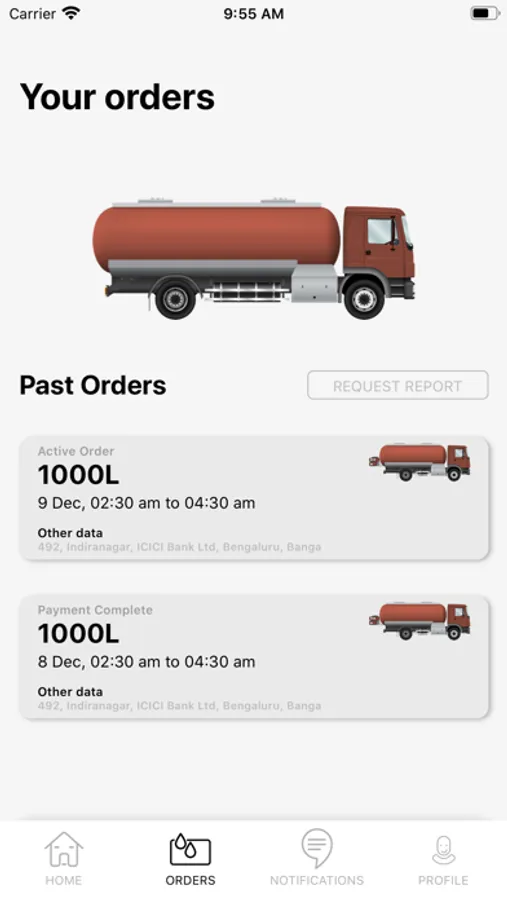 Reports – Every wondered how much water is being used? Now get a comprehensive list of your previous orders and get complete clarity on your water consumption.