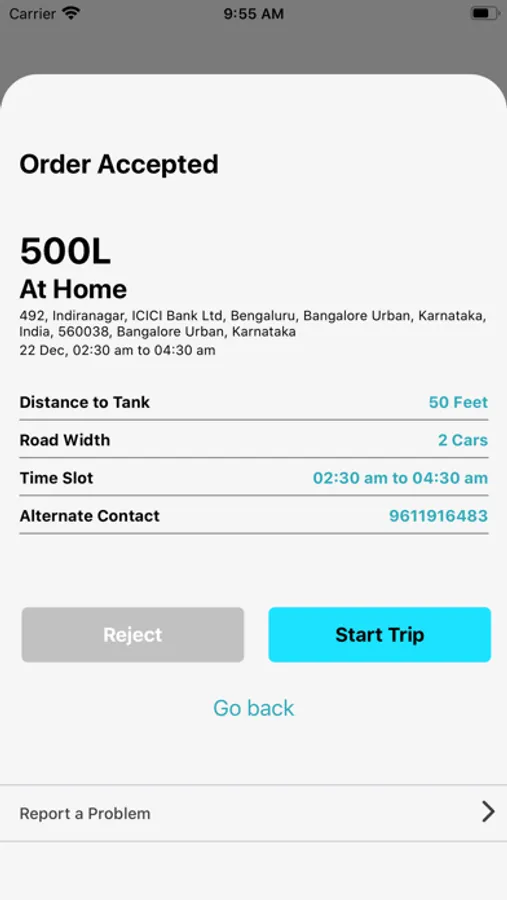 OTP verification – OTP is shared on SMS to either one or two numbers. Your gate keeper’s number can be used as a secondary number for him to validate the delivery for you. This way you can ensure that the water was actually delivered even without your presence.