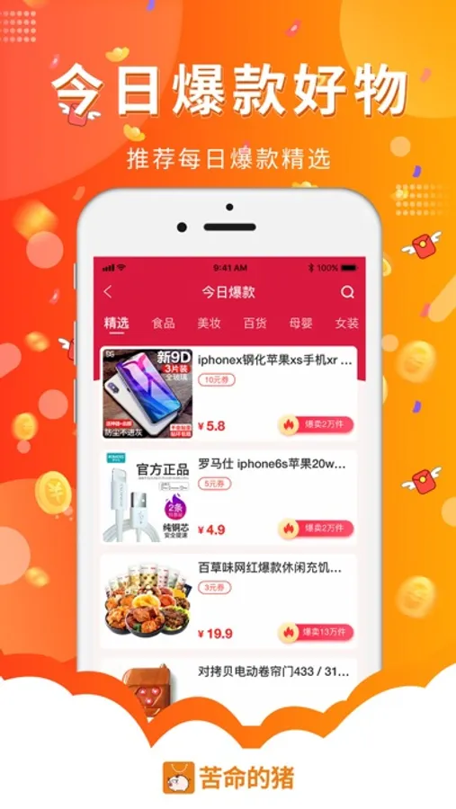 苦命的猪是一款“买到就是省到”的APP。主打“省”的同时,苦命的猪更注重产品质量。”苦命的猪也致力通过“社交+电商”的模式,让更多的用户带着乐趣分享实惠,享受全新的共享式“零失望”购物体验。