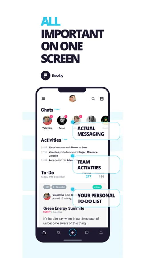 FLUSSBY - will help organize effective communication between employees, work colleagues and team members.
