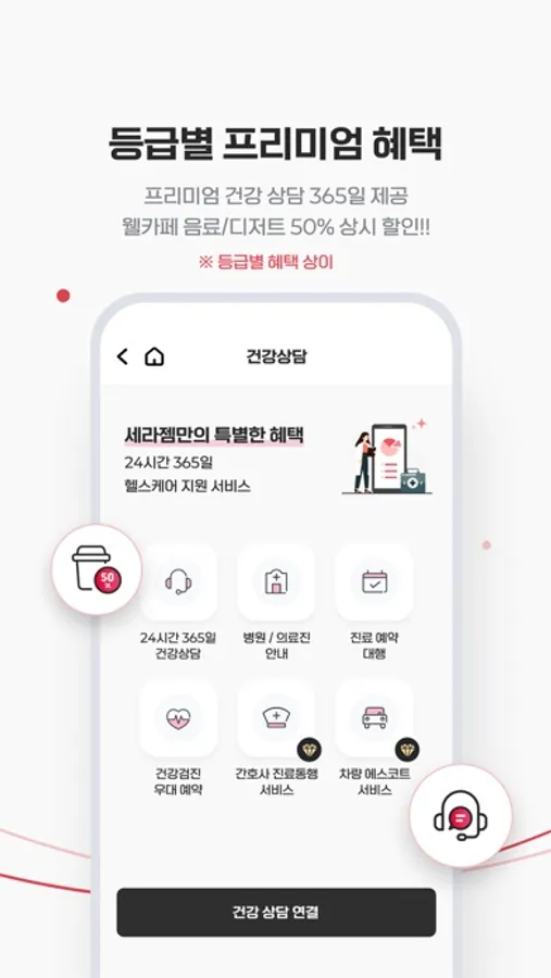 * 웰라이프 멤버십 앱 서비스 및 세라체크 서비스는 비의료기관이 제공하는 보조적 건강관리 서비스입니다.
