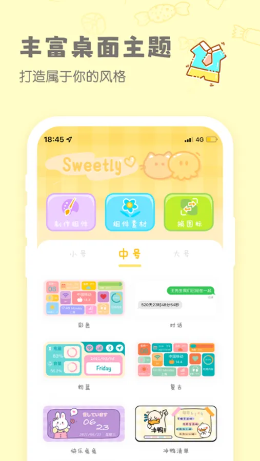 -提供多款“小号”“中号”“大号”的桌面组件,简单一键编辑,随意修改内容