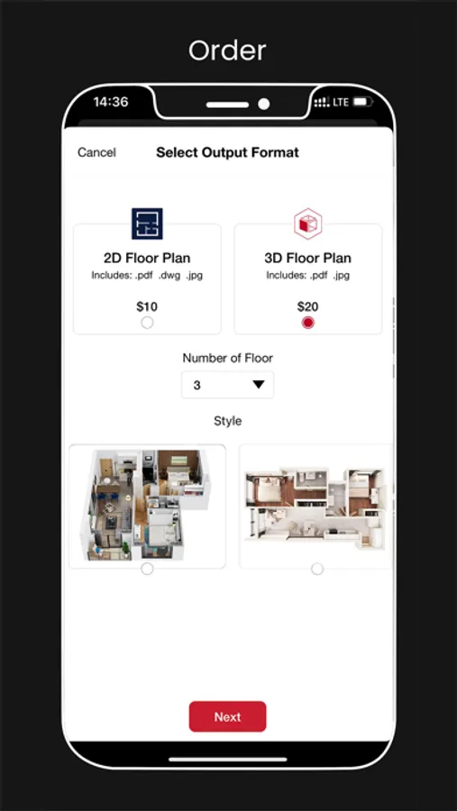 We offer the “UPLOAD FOR PROCESSING '' service to help you transfer your scans to file formats such as 2D floor plan, 3D floor plan ( with the styles in our library), CAD file in an effective way ( professional model, short-time turnaround, and affordable cost).