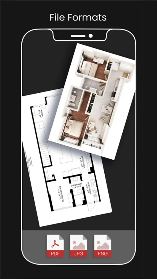 • Download your floor plan in different file formats (in JPG, PDF, and DWG).