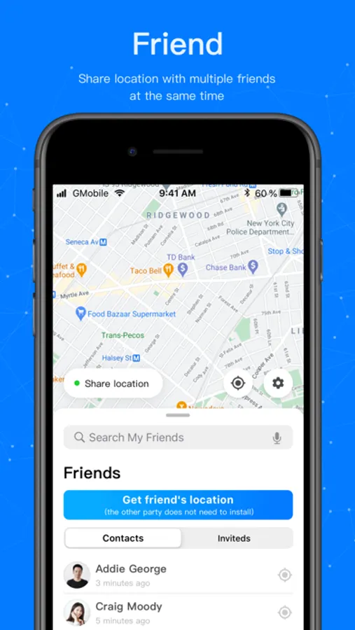- Support locate friends from any web-enabled device, no app or sign up required!