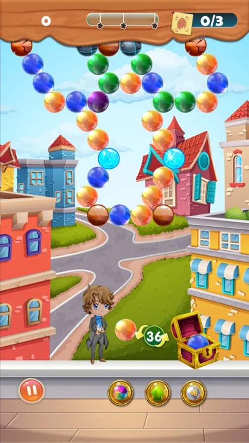The famous detective needs your help to solve the case! Crimes are rampant in the city, and with every level, comes a new case that you must solve with the detective. The only way to gather clues and dig deep into the matter is to aim and shoot the color bubble towards the color matching cluster and pop the bubbles. As the bubble blast occurs, you can gather more clues as to how you can solve cases in the game.