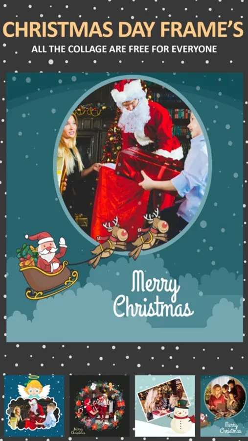 Best Christmas Photo Frame App Ever.Use best Christmas photo frames and transform your photo image into prettiest Christmas cards. Increase Christmas spirit with photo frame effects such as Santa Clause and reindeer, Ice castle, Snowman and many others. Free photo frame application is provided to you colorful frames with best accompanying pictures on them. Personalize your pictures with free picture frames and celebrate Christmas and New year in the most beautiful mood.
