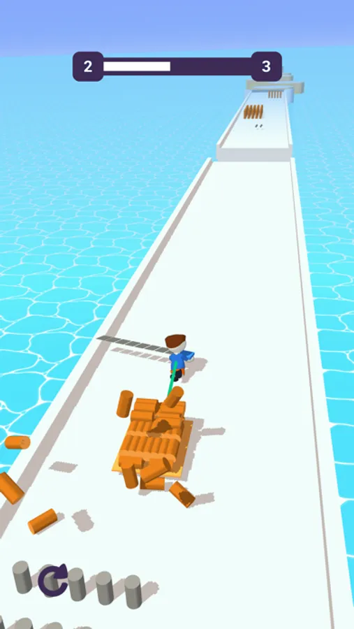 Increase your blade size by collecting blades and then cut woods with it. Use the woods to make bridge between platforms. Avoid the red obstacles. All this with a simple swerve control