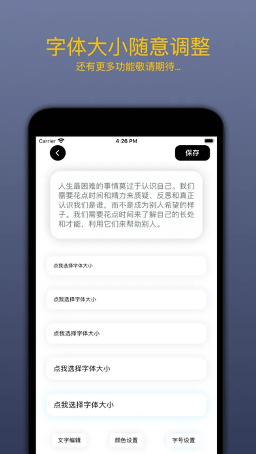 ·字体设置:字体可以自定义大小,以便与输入的内容相适应