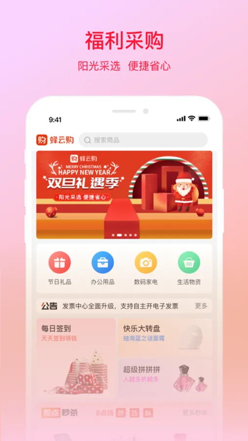 “蜂云购”APP是一个阳光合规的数字化福利礼品采购服务平台,核心优势在于“用信用体系去中心化、闭环式共享采集”,帮助企业在线上采购过程中,简化流程,一键直采;福利礼品丰富多样,价格透明,全程可视化呈现,方便员工快捷随心采购。