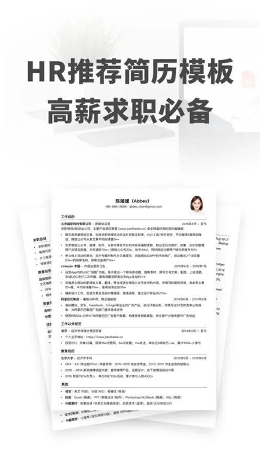 专为手机编辑简历的定制APP,一键生成精美简历: