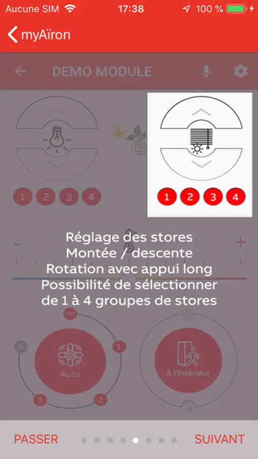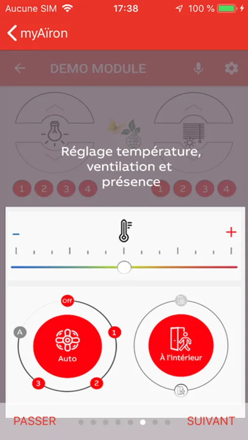 Il suffit de s’appairer au détecteur de présence le plus proche pour avoir accès aux paramètres de climatisation, d’éclairage et de stores.