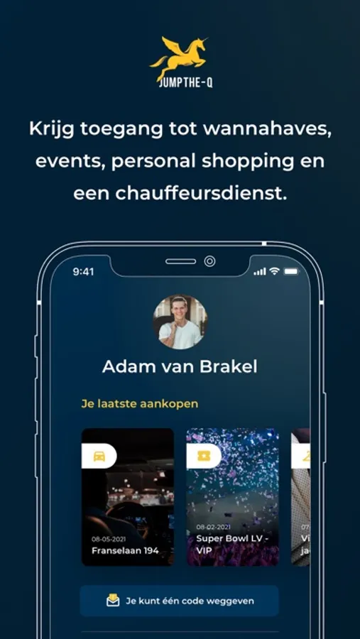 Dit is Jumpthe-Q. De App voor voorrang en voordeel. Met Jumpthe-Q kun je direct lunchen/dineren bij top-restaurants en hot-spots. Boek je vakanties en reizen voor de allerbeste prijs, en heb je wannahaves, events, personal shopping en een chauffeursdienst altijd bij de hand.