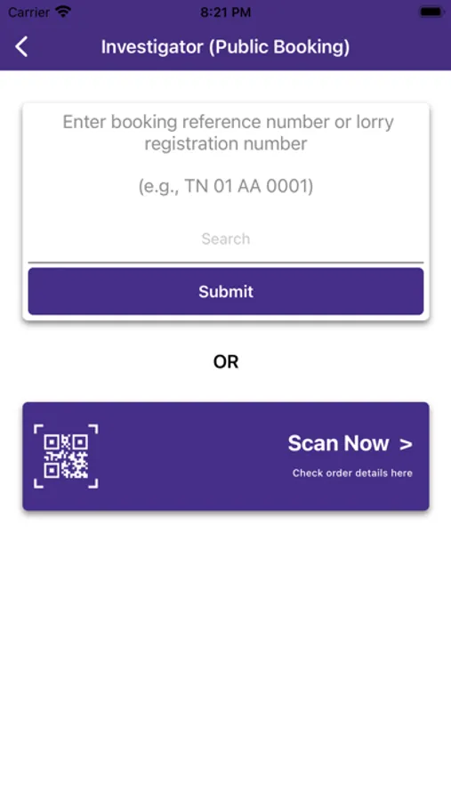 TNsand Investigator app helps RTO/ checking inspectors and officers to verify the permit slip. They can scan the QR code available from permit slip. They can also validate sand load and delivery address by lorry registration no. These numbers can be found in permit slip.