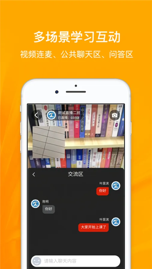 多场景学习互动:视频连麦、公共聊天区、问答区、课程回放