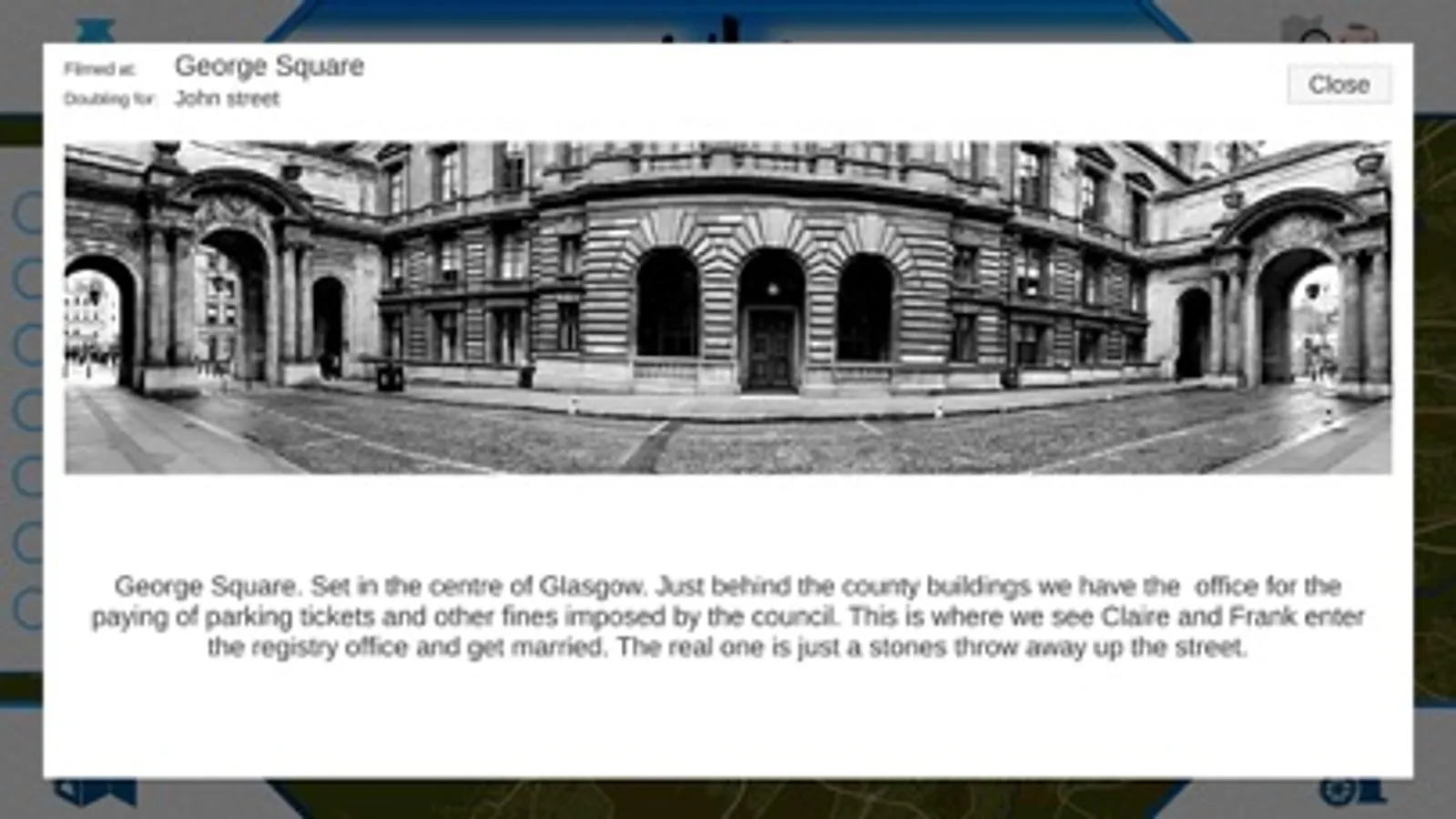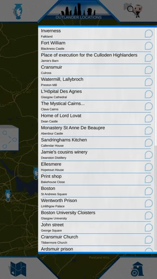 The app itself is designed to take you around many of the filming sites from the first 3 seasons both from the comfort of your own home and if you manage to visit Scotland, then as a way of moving around Scotland in real time.