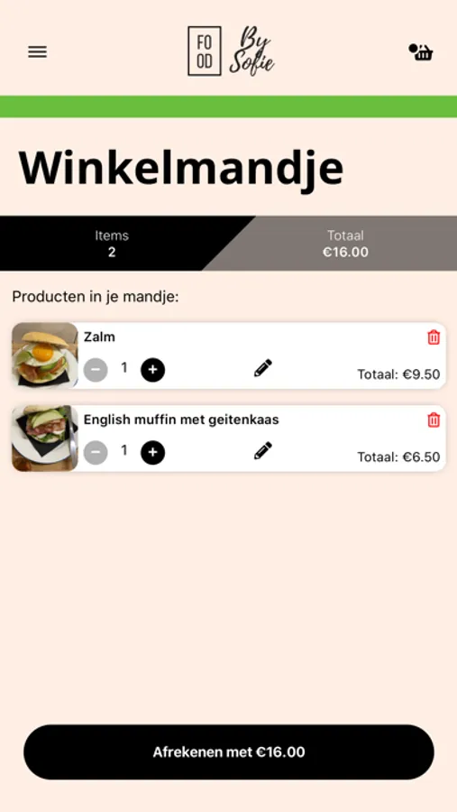 Waar u ook bent, met de app van Food by Sofie kan u zonder zorgen bestellen uit het uitgebreide assortiment.