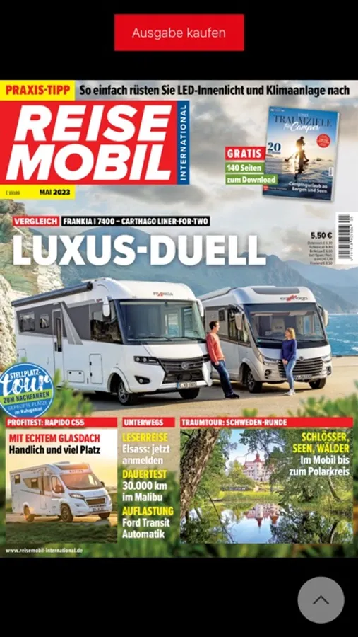 Europas kompetentes Wohnmobil-Magazin berichtet über alle Themen, die Reisemobilisten interessieren – von Branchentrends über Reisereportagen und Ausflugsmöglichkeiten bis hin zu einem umfangreichen Serviceteil.