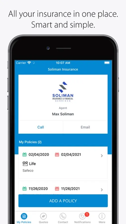 In one application, access ALL of your insurance policies. Policies from us are automatically available and you can add other policies with a few simple taps. No more struggling to locate documents or needing a call back every time you have a question.