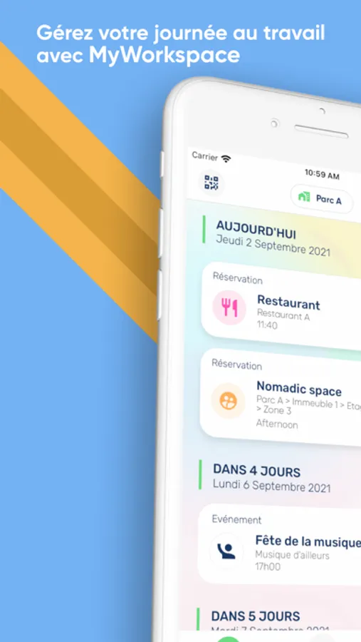 Réservation d’un espace de parking ou d’un créneau au restaurant d’entreprise. Pas de stress : vous profitez pleinement de chaque pause pour vous détendre.