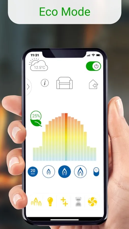 Furthermore, RAISfire offers an energy saving Eco Mode, the auto-comfort Thermostatic Mode, and a Program Mode that allows you set the ON/OFF times and temperatures. And save all your favorite settings using the Profile Mode.