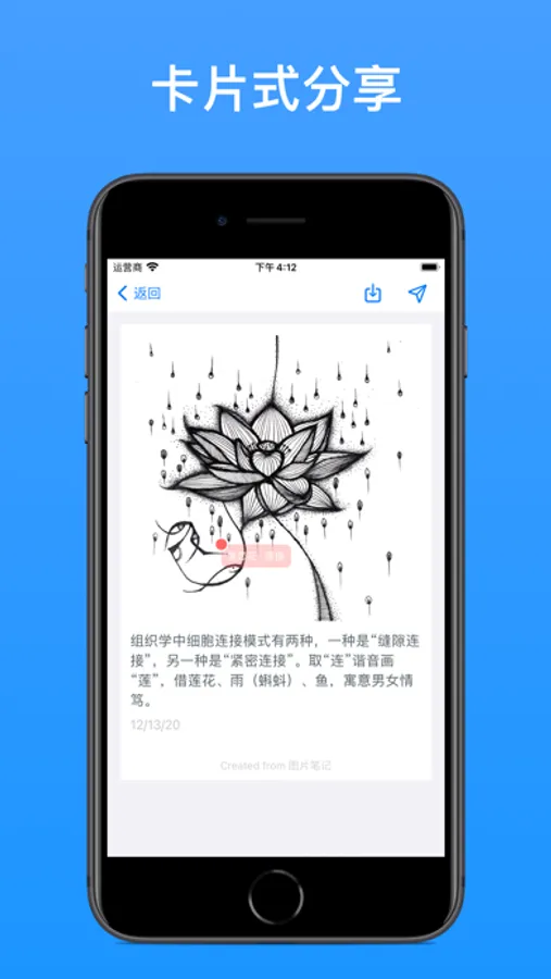 使用图片笔记帮你分门别类整理照片,你可以为它们附加说明,标记时间、地点以及当时的想法等。更重要的是,你能轻松找到它们的存放位置,再也不用担心被其他照片“淹没”。