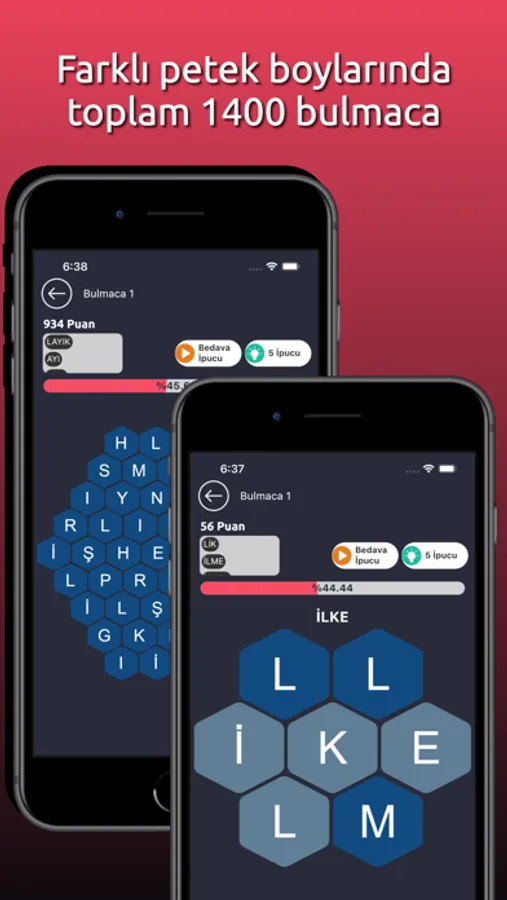 Farklı petek boylarında toplam 1400 bulmaca ve binlerce kelime.