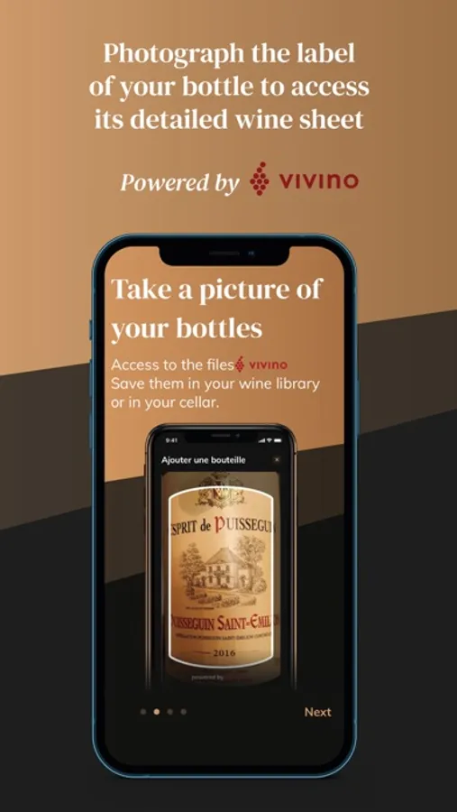 Photograph the label of a wine bottle and access a detailed VIVINO® wine sheet or fill them in manually.