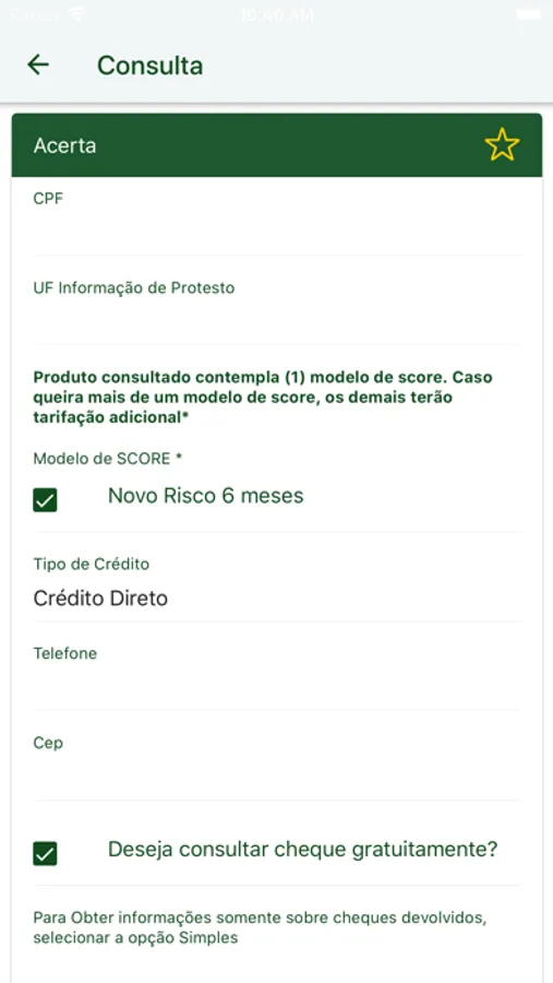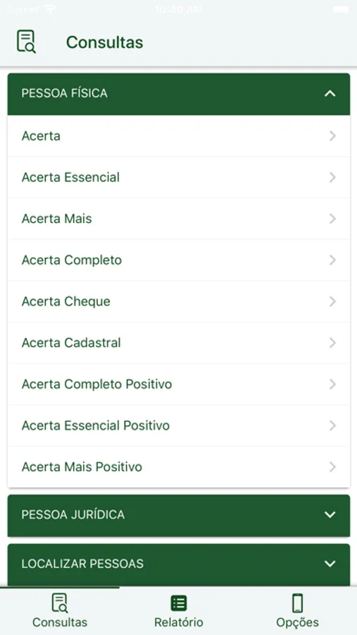 Além das consultas mais habituais, e o score de crédito, também estão disponíveis neste aplicativo as consultas das famílias Acerta e Define.