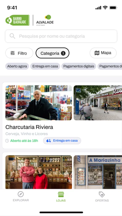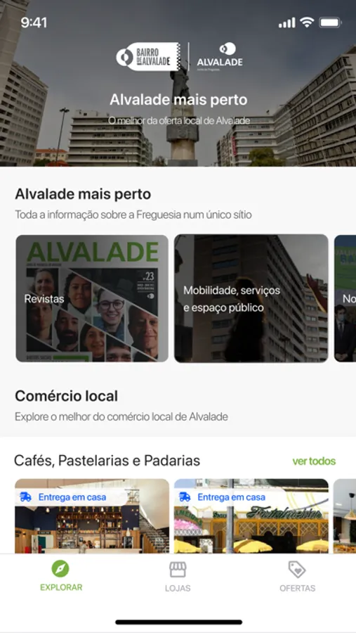 O Bairro de Alvalade é uma aplicação que visa apoiar o comércio local na transformação digital, permitindo aos comerciantes ter uma montra digital com informação relativa às suas lojas e produtos. A aplicação visa também a divulgação de informação de interesse sobre o Bairro de Alvalade.