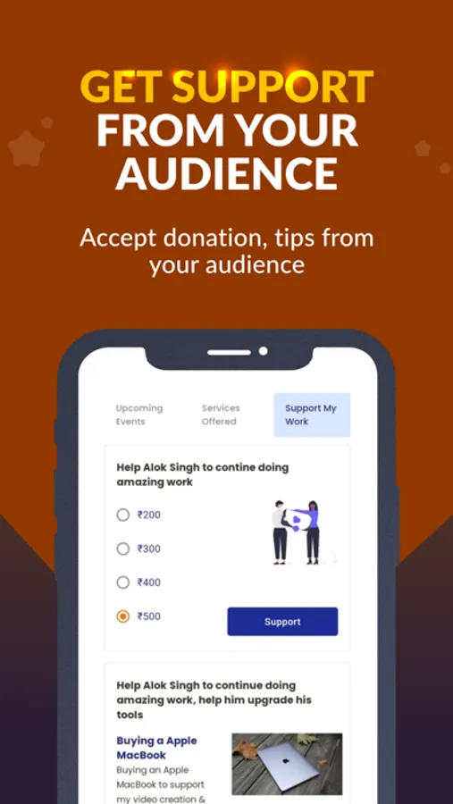 Monetize your audience: Sell services, accept bookings, conduct workshops, accept tips and raise funds for your creative projects.