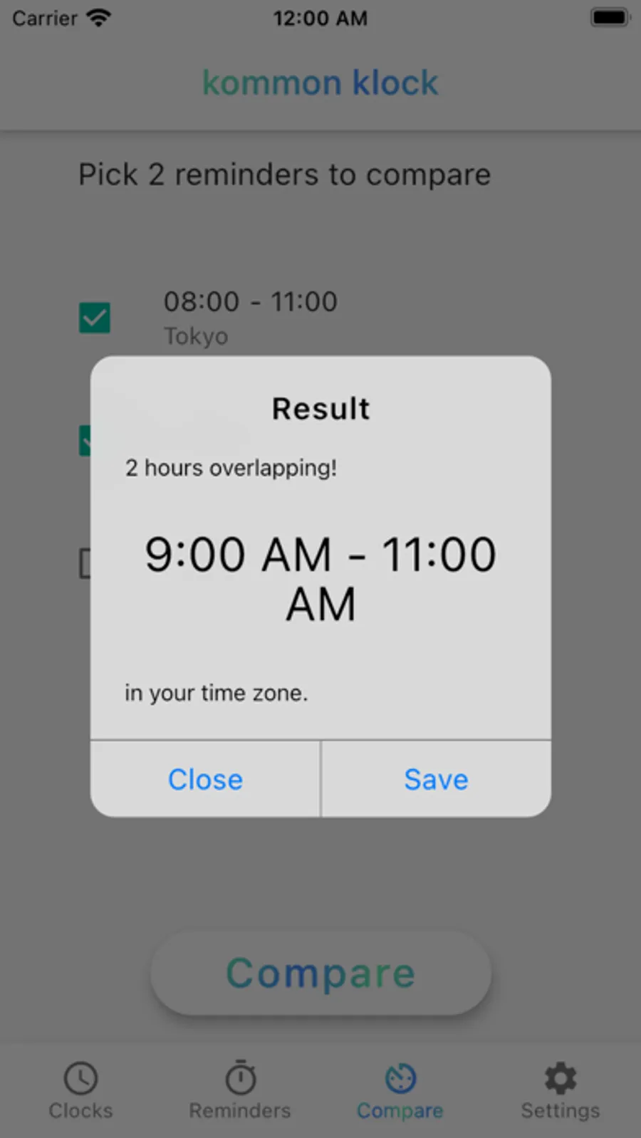 Can you calculate the overlapping time between 8 AM - 11 AM in Tokyo and 7 PM - 9 PM in New York? kommon klock will do for you.
