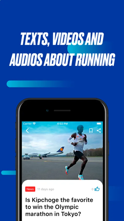 Learn from the top! Daily content developed by top-notch athletes, coaches, and all running-related professionals. Know everything about the running world: gear, racing briefing, nutrition, training, and much more.