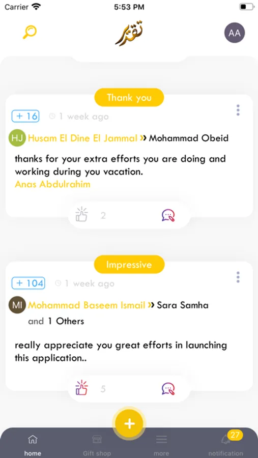 Taqdeer platform is an employee recognition system and corporate social network, makes it easier than ever to say, “thank you”.