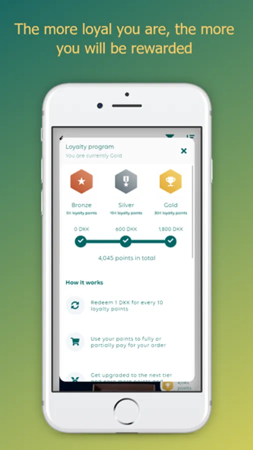 You order and pay in app and earn cash back. It's that easy, and the next time you come you use your loyalty points to save money on the bill.