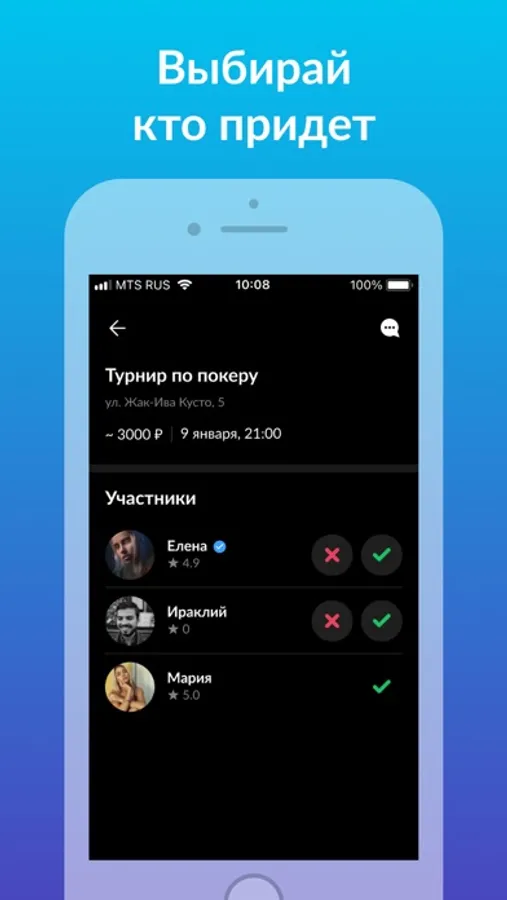 — тот, кто хочет попасть на встречу, свайпает вправо, и тебе приходит уведомление