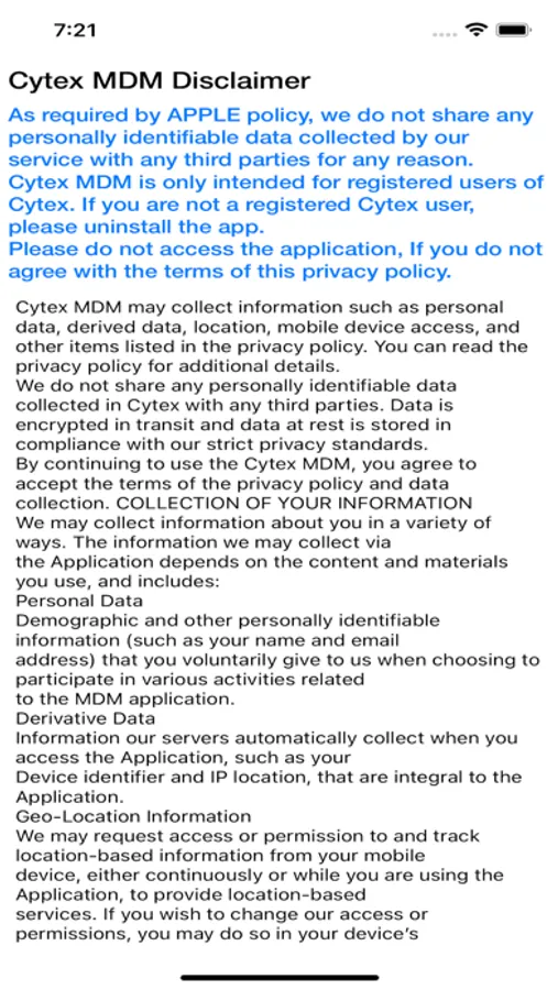 Cytex MDM is used for management of apple devices in an organization. Cytex MDM track user location, network informations and can send push notifications to device in foreground and background modes as well.